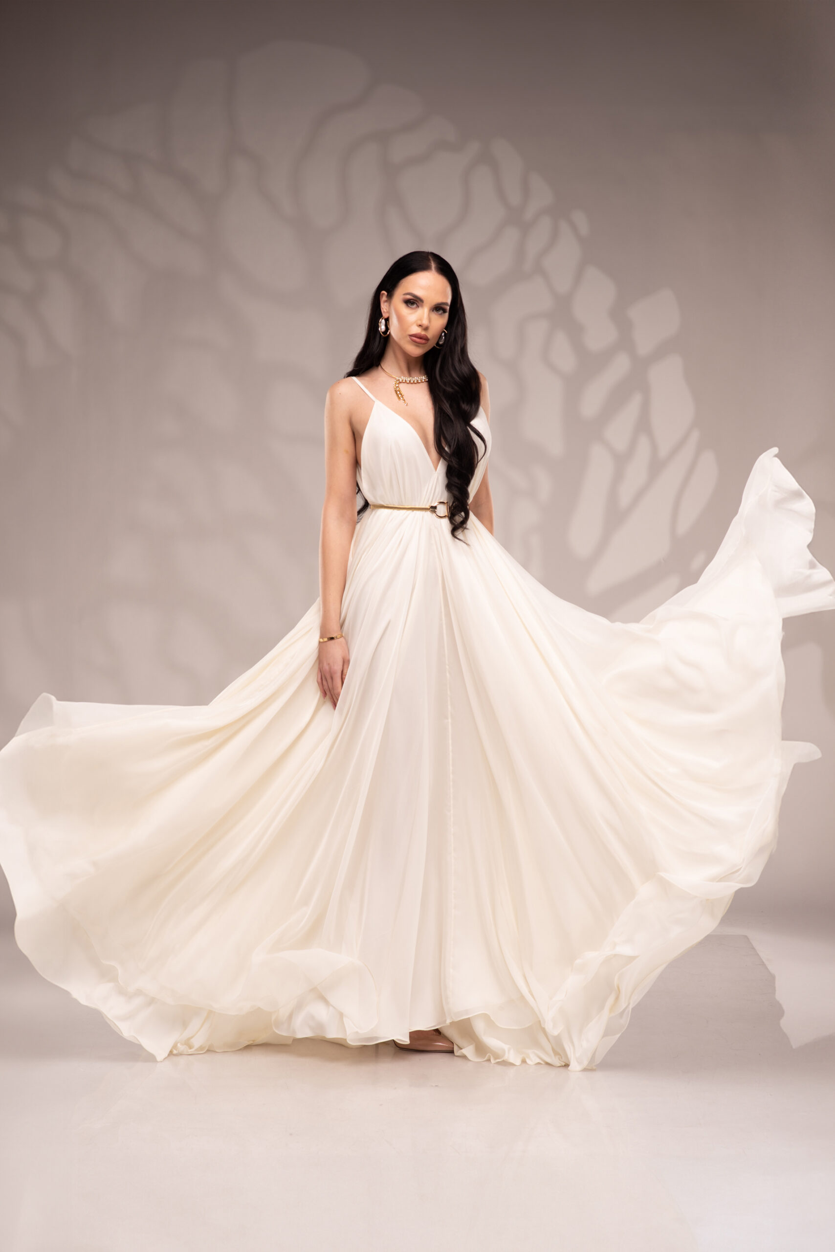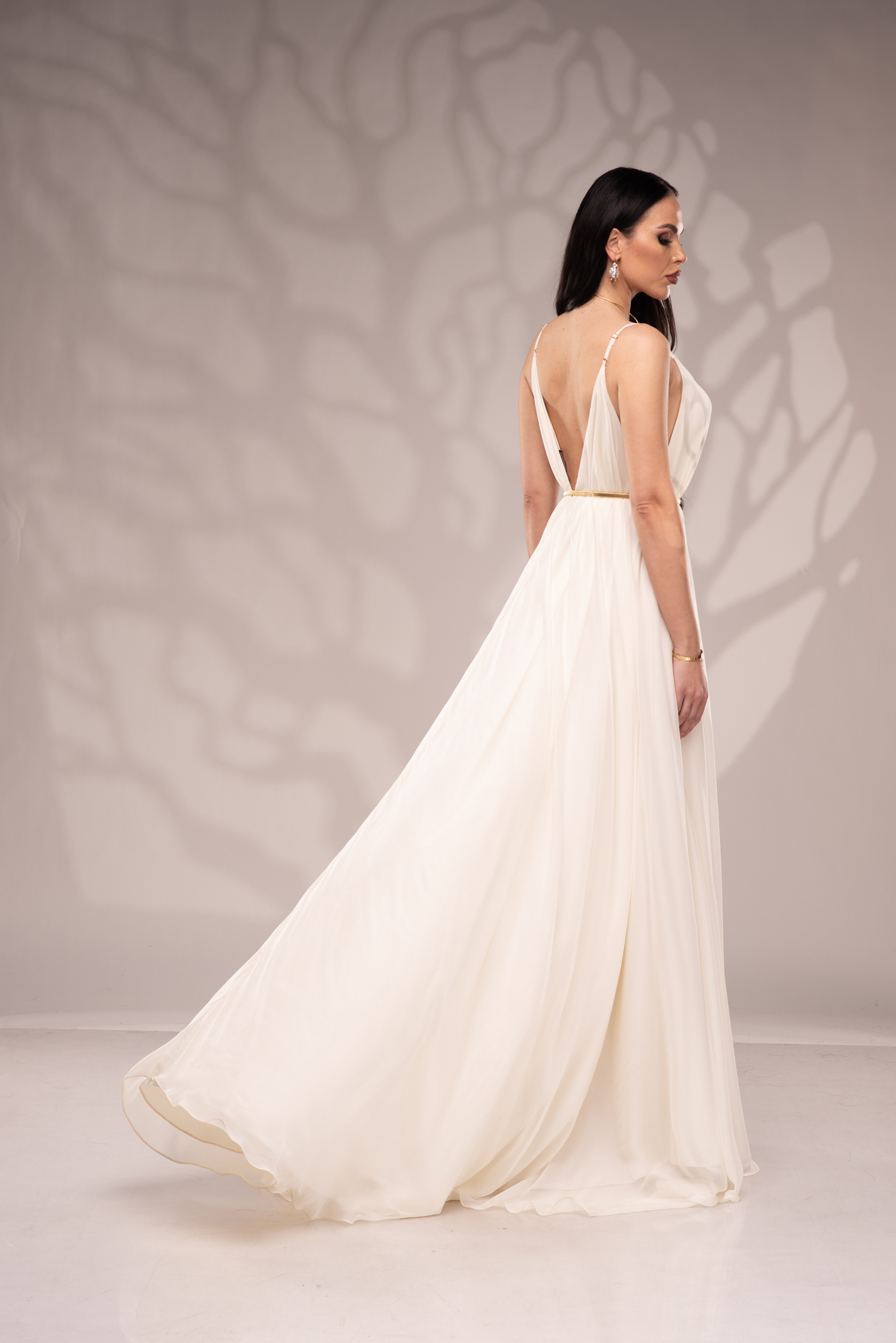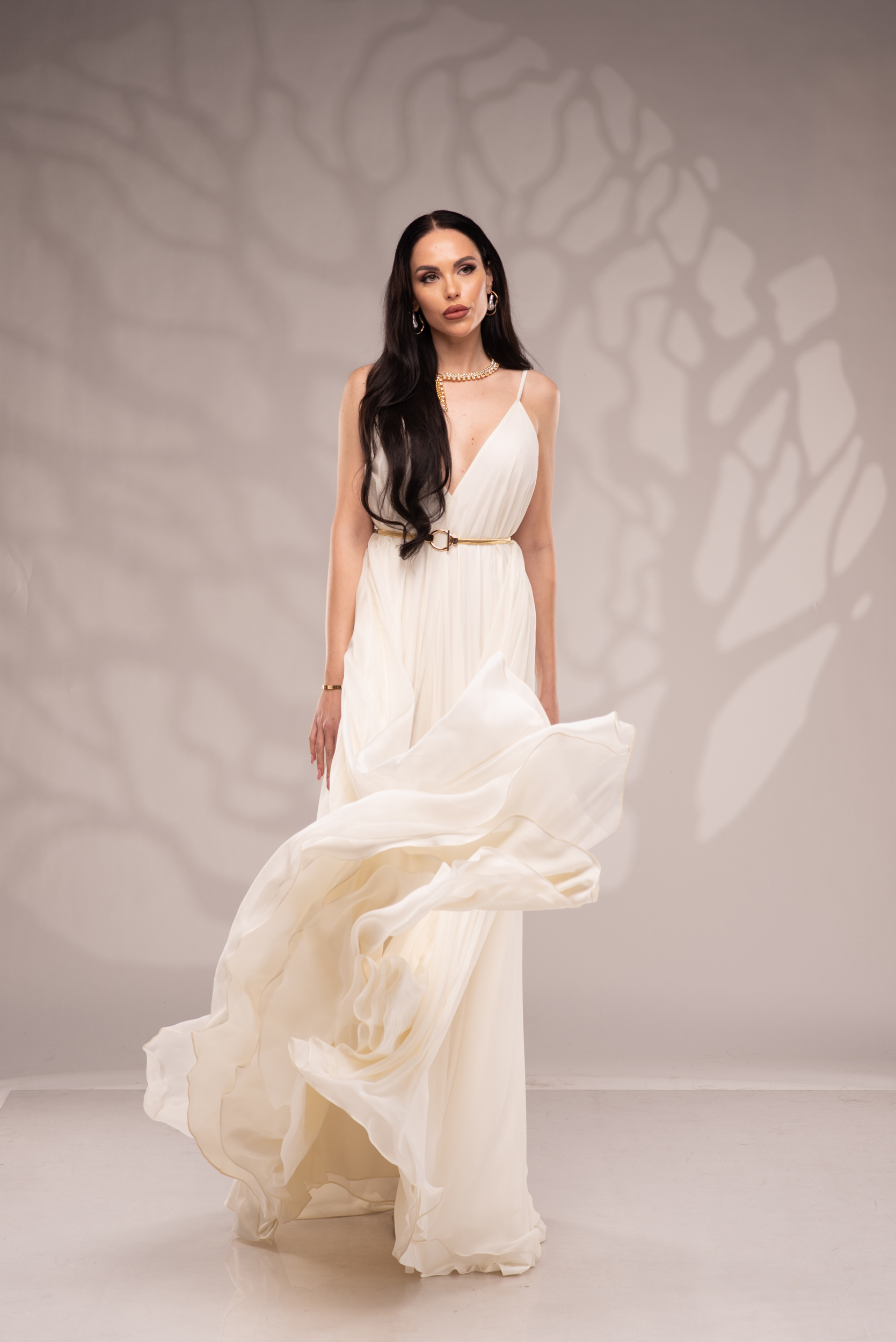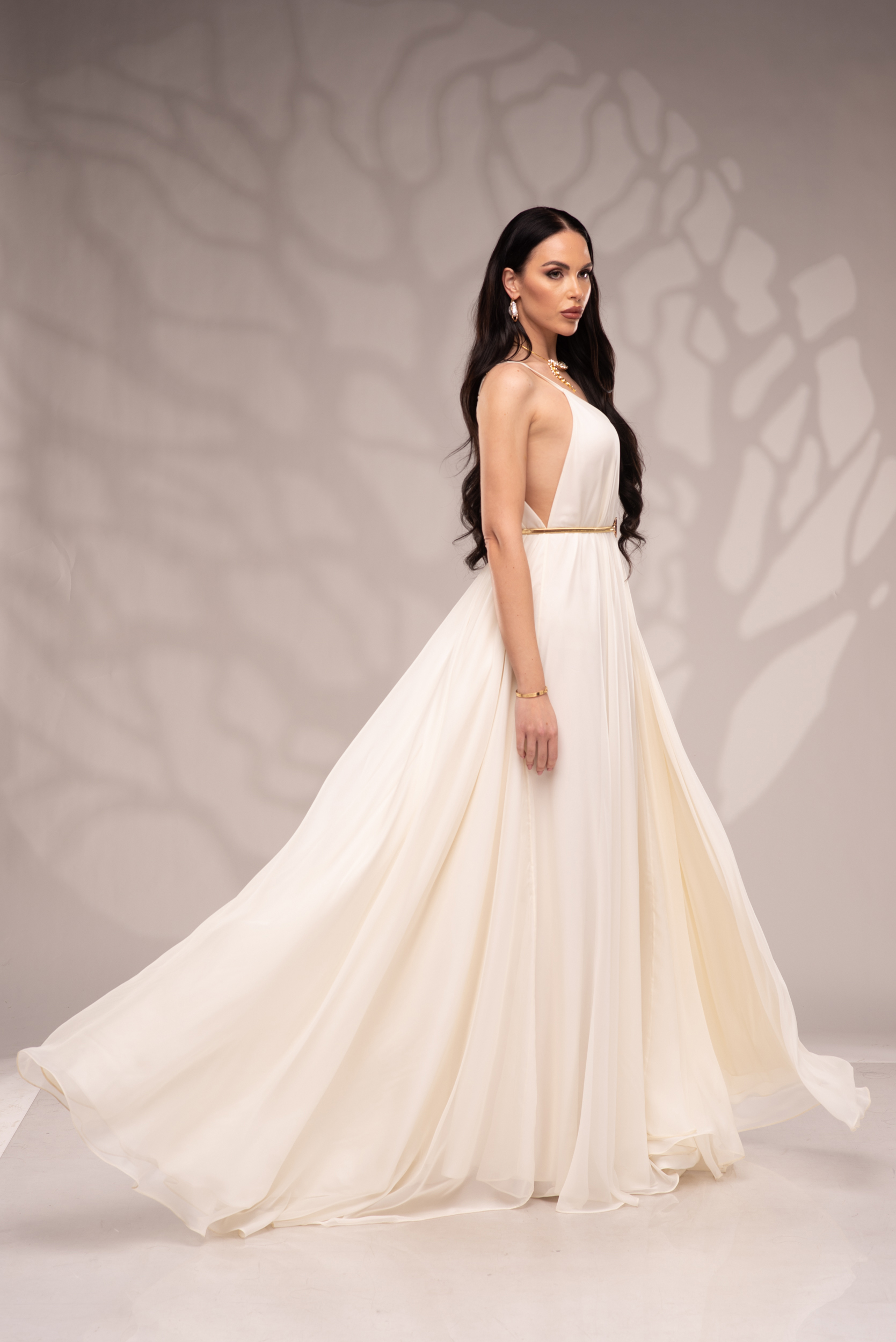 Рокля Nicolette е олицетворение на фина елегантност и съвременна женственост, част от колекцията „Градината на сетивата“. Създадена от ефирен воал и луксозна ацетатна коприна, тя се разлива меко по тялото, обгръщайки го с лекота и въздушност. Цветът шампанско придава деликатен блясък и благородно излъчване, без нужда от допълнителни детайли или принтове. Моделът е с V-образно деколте и тънки регулируеми презрамки, които подчертават линията на раменете с нежност. Свободната кройка пасва на всяка фигура и ръст, създавайки усещане за естествена грация. Роклята Nicolette не просто се носи – тя разказва историята на съвременната муза, която сияе с лекота и увереност.