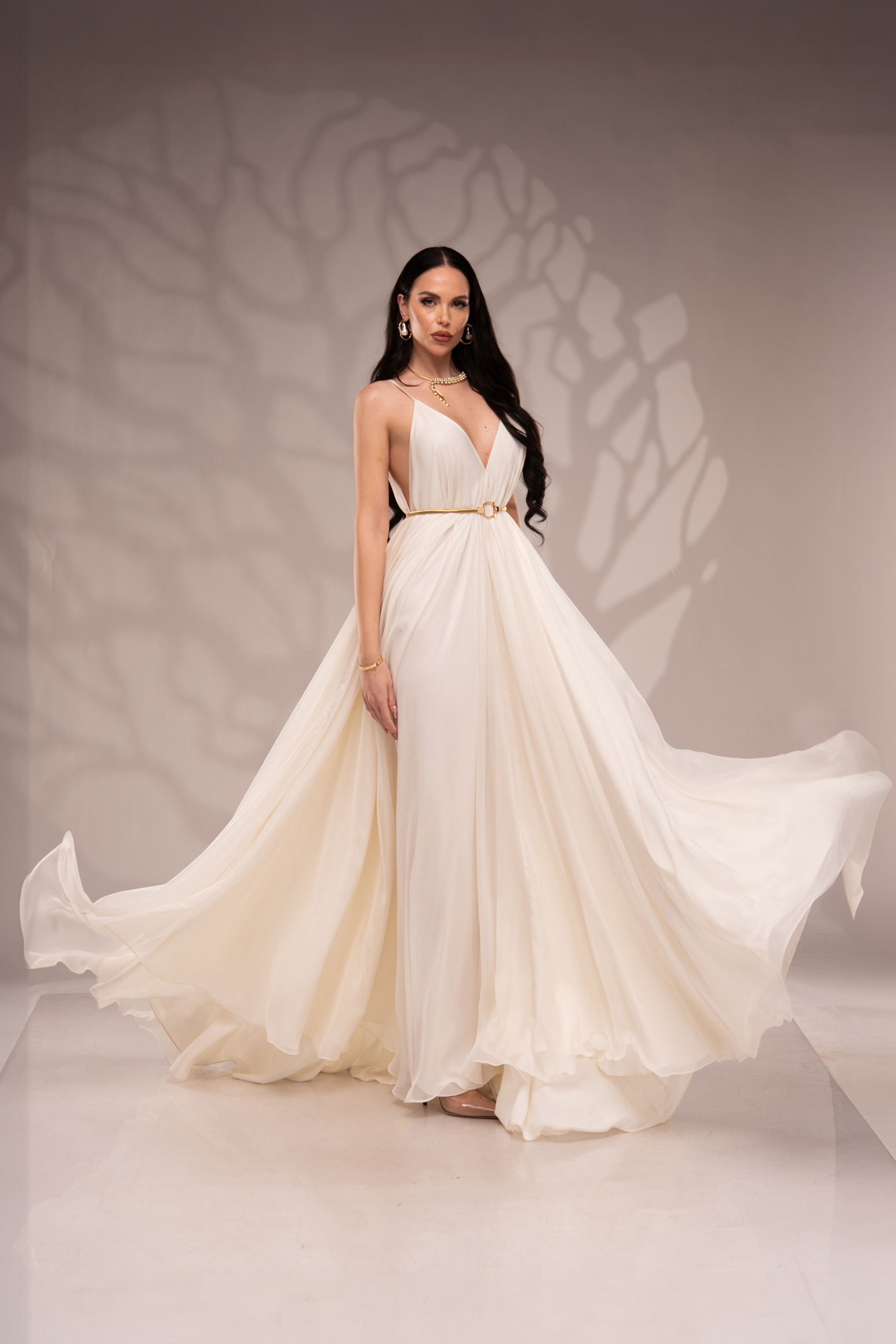 Рокля Nicolette е олицетворение на фина елегантност и съвременна женственост, част от колекцията „Градината на сетивата“. Създадена от ефирен воал и луксозна ацетатна коприна, тя се разлива меко по тялото, обгръщайки го с лекота и въздушност.